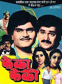 Pheka Pheki (translation: Cheating) is a 1989 Indian Marathi-language comedy film written by Mulraj Rajda, directed by Bipin Varti, produced by Chelaram Bhatia and Laalchand Bhatia under the production banner of Glamour Films and distributed by Everest Entertainment.[4][5] Released in Maharashtra on 28 December 1989, the film stars an ensemble cast of Ashok Saraf, Laxmikant Berde, Savita Prabhune, Nivedita Joshi, Chetan Dalvi, Pratibha Goregaonkar and Ajay Wadhavkar.[6] The music was composed by Anil Mohile. The film was remade in Hindi as Golmaal Returns and itself core plot have been inspired by 1973 Hindi film Aaj Ki Taaza Khabar.[7][8][9][10]