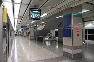 The station uses symbol of a water wave referring to Khlong Saen Saeb.[1] It is an underground station, 23 metres wide and 200 metres in length, with a depth of 20 metres, and uses island platform