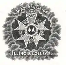 Phi Alpha (ΦΑ) is a men's Literary Society founded in 1845 at Illinois College in Jacksonville, Illinois. It conducts business meetings, literary productions, and other activities in Beecher Hall, the oldest college building in the state of Illinois.