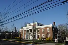 The first permanent home for the society was constructed in 1882 on a site behind the Allbriton Center where Cross Street runs. It had no residential accommodations for undergraduates, and was used for meetings, dining facilities, and society offices. The society in 1906 hired Henry Bacon, formerly of the architectural firm McKim, Mead and White to design a Doric Greek revival structure at 200 High Street. The new house was an exemplary design for group living. Many people view the Eclectic house as a design precursor to Bacon's later Lincoln Memorial in Washington, D.C. (They are both designed in a strong Doric style, but lack the typical pediment.) The Alpha Eating Club was housed in the lower stories of the southern wing of the house. The building was listed on the National Register of Historic Places in 2013.