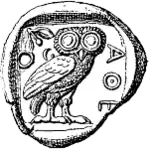 The emblem of Phi Sigma Tau is in the shape of a pentagon; each of the five angles contains a symbol that represents one of the five streams of world thought: Chinese, Indian, Islamic, Hebrew, and Greek.[3] The seal of Phi Sigma Tau is the reverse side of the Athenian silver tetradrachm, which bears the owl of Pallas Athene, the goddess of wisdom and rational inquiry, an olive spray, a small crescent, and the name of Athena in Greek.[3] The margin of the seal bears the name of the society. The colors of Phi Sigma Tau are white and purple.[3]