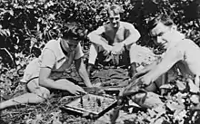 Lamason then proceeded to organise the airmen into groups by nationality and appointed a Commanding officer within each group.[22][32] Lamason did not do this just to improve their morale but because he also saw it as his responsibility to carry on his war duties despite the adverse circumstances.[6] Captured US pilot Joe Moser believed that Lamason also did this because if the right opportunity presented itself, the group would be able to operate much more effectively if military discipline and operations were applied.[32]