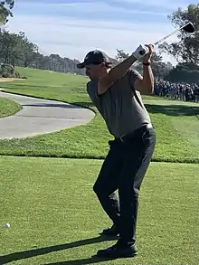 Mickelson has spent more than 25 consecutive years in the top 50 of the Official World Golf Ranking.[8] He has spent over 700 weeks in the top 10,[9] has reached a career-high world ranking of No. 2 several times and is a life member of the PGA Tour. Although naturally right-handed, he is known for his left-handed swing, having learned it by mirroring his right-handed father's swing.[1] He was inducted into the World Golf Hall of Fame in 2012.[10]