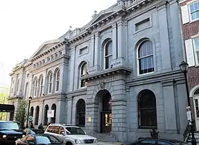 In 1818 PSFS issued its first home mortgage to architect William Strickland for US$7,000.[1] That same year PSFS moved its offices to Sixth and Minor Streets. In the 1820s PSFS moved three more times, to Decatur Street in 1821 and Third and Walnut Streets in 1826. The latter office proved too small, so PSFS quickly bought its own building elsewhere on Walnut Street and moved there on October 2, 1827. By 1833 PSFS again needed more room and PSFS bought property on which the bank built a structure designed by Thomas U. Walter. PSFS moved into the new building in February 1840.[10][11]