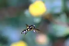 Flight period last from mid May through September, with a peak at the end of June.[6] The adults feed on different flowers, for example, Ballota nigra, Potentilla erecta and Heracleum sphondylium.[7] Little is known of its larval stages. Larvae have been found underground in nests of the black garden ant (Lasius niger) and yellow meadow ant (Lasius flavus), probably to feed on ant-attended root aphids Forda formicaria and Trama species that they collect.[6][7][8][9]