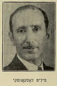 Philip Laskowsky (Yiddish: פֿיליפּ לאַסקאָװסקי; c.1884–1960) was a Polish-born American composer, arranger, bandleader, comedian and actor of the Yiddish theatre.[1][2][3] He collaborated with a number of well-known figures of the American Yiddish theatre such as Boris Thomashefsky, Louis Gilrod, Isidore Lillian, Jacob Jacobs, and Rubin Doctor.[2] He is sometimes credited with having written the music for the well-known Yiddish song Oyfn veg shteyt a boym, although this is disputed.[4]