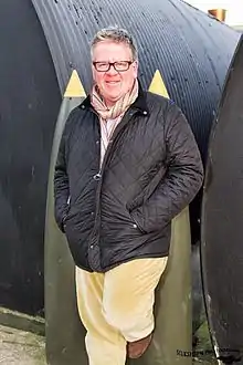 Philip Martyn Serrell (born March 1954)[2] is an English auctioneer, antiques expert and television presenter who appears as regular presenter on BBC TV antiques programmes such as Bargain Hunt and Flog It!. He began his career as a livestock trade auctioneer, but he became a chartered surveyor in 1988 to analyse antiques. Serrell has also participated in musical charity events, performing as a singer with The Celebs.