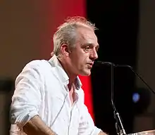 Poutou supported and took part in the yellow vests movement that started in 2018, within the larger protests against Emmanuel Macron, stating it was "the expression of a fed up with a society that is deeply unjust".[19] On 28 June 2020, he took office as a municipal councillor and metropolitan councillor of Bordeaux, following the 2020 municipal election, in which he campaigned most notably for free public transportation. Previous attempts to win a seat in the municipal council as lead candidate in 2001 and 2014 were unsuccessful.