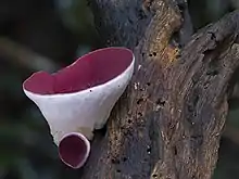 Phillipsia subpurpurea is a species of fungus in the family Sarcoscyphaceae. It is found in Australia where it grows as a saprophyte on wood. The fungus was first described scientifically by English mycologists Miles Joseph Berkeley and Christopher Edmund Broome. Its cup-shaped fruit bodies lack stipes and have purplish interior surfaces.[1]