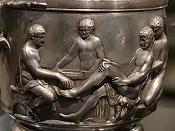 According to another myth, Pylius (Πύλιος), the son of god Hephaestus, healed Philoctetes at Lemnos.[8][9]