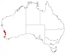 It flowers from October to December,[4] and is found on sandy soils in shrublands and eucalypt woodlands.[4]