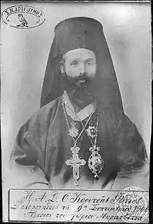 In 1902 Photios was appointed metropolitan bishop of Korçë and Përmeti, centered in Korçë (Greek: Κορυτσά), modern southeast Albania (then part of the Ottoman Empire). In general, Photios showed great interest in the promotion of the thriving Greek educational system among the local youth and often made various proposals. He also became the president of the city's schools committee.[2] In 1903 he was actively involved in all major educational issues that concerned the schools in Korça,[3] as well as in nearby Permet.[4] During the 1903–1904 school year he proposed that sports activities should be part of the curriculum in the local schools.[5] As a result, the first sports events by the pupils of Korça took place on May 30, 1904, in the local Bangas Gymnasium.[6] In the following school year these events attracted a major part of the local population and officials who attended them.[6]