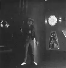 While primitive compared to technology today, entailing wearing 15 pounds of battery packs and equipment, Photon was one of the first video game-like experiences that one could play in the real world.[1] The arenas featured multiple levels, catwalks, mazes, and an observation deck where people not participating could cheer on their friends in the game, or get target practice by shooting players from special token-operated emplacements. (Shots from observation deck guns did not affect the game in any way at most arenas.) This contrasted sharply with competing laser-tag centers, whose fields were small, single-level, composed of clusters of free-standing painted cardboard barriers, and typically contained no observation area of any sort. Also, in Photon, players were allowed to roam at will through the entire playing field rather than be restricted to team-specific zones.