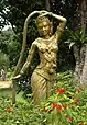 Images of Phra Mae Thorani are common in shrines and Buddhist temples of Burma, Cambodia, Thailand and Laos. According to Buddhist myths, Phra Mae Thorani is personified as a young woman wringing the cool waters of detachment out of her hair to drown Mara, the demon sent to tempt Gautama Buddha as he meditated under the Bodhi Tree.