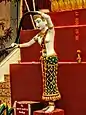 She is known by various names throughout Southeast Asia. In Khmer, she is known by her title Neang Konghing (នាងគង្ហីង, lit. "lady princess"),[1] or as Preah Thoroni (ព្រះធរណី) or Preah Mae Thoroni (ព្រះម៉ែធរណី; "Mother Earth Goddess").[2] In Burmese, she is known as Wathondare (ဝသုန္ဓရေ) or Wathondara (ဝသုန္ဓရာ) (from Pali: vasundharā) and variously transliterated as Wathundari, Wathundaye, Vasundari, etc.[1] In Thai and other Tai languages, she is known as Thorani (from Pali: dhāraṇī, lit. 'ground, earth"')[3] in various appellations, including Nang Thorani (นางธรณี), Mae Thorani (แม่ธรณี), and Phra Mae Thorani (พระแม่ธรณี).[1]