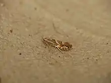 The wingspan is about 8 mm. There are two generations per year with adults on wing in May and June and again in August.[2]