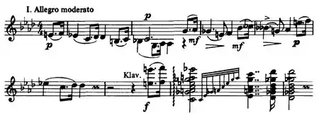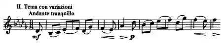 The concerto is written in two movements, the second being a theme and variations forming an amalgam of slow movement, scherzando elements and finale (coda).[1]