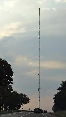 The Piaski transmitter ( Polish: Radiowo Telewizyjne Centrum Nadawcze Lublin / Piaski or short RTCN Piaski) is a facility for FM- and TV-broadcasting near Piaski in Lublin Voivodeship, Poland at 51°08′02″N 22°52′11″E / 51.13389°N 22.86972°E. The piaski transmitter uses a 342 metre tall guyed mast antenna tower, which was built in 1990. After the collapse of the Warsaw Radio Mast the Piaski transmitter became the 4th tallest structure of Poland.