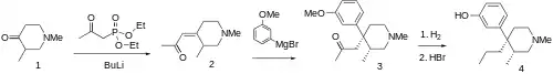 - ↑ Martinelli MJ, Peterson BC (1990). "A concise, stereoselective synthesis of picenadol". Tetrahedron Letters. 31 (38): 5401–5404. doi:10.1016/S0040-4039(00)97857-2.