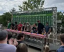 Since its founding in 2015, every Picklesburgh festival has featured a pickle juice drinking competition as its headline event.[21] In the competition, contestants race to drink a quart-sized jar of pickle juice without regurgitating, spilling, or leaving any juice in the jar.[9][21] The winner is dubbed the "Mayor of Picklesburgh" and receives a belt and a $500 cash prize, as of 2023.[9][22]