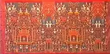 A pidan is a type of silk cloth used in Cambodian and Khmer weddings, funerals, and Buddhist ceremonies as a canopy or tapestry. Pidan are often decorated with images of wats, nāgas, apsaras, scenes from the life of Buddha, Angkor Wat, animals (especially elephants), and plants.[1]