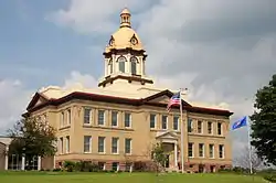 The Pierce County Courthouse is a historic governmental building in Ellsworth, Wisconsin, United States. Built-in 1905, the courthouse sits on the edge of Ellsworth's business district. Built on a raised foundation of sandstone, it features elements of both the Beaux-Arts and the Neoclassical styles of architecture. Among the distinctive elements of its construction are a large hexagonal dome and multiple Ionic columns.[2]