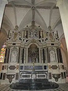 - ↑ The sculptures were delivered in 1631 by Charles Hoyau, Étienne and Pierre fournissent le marbre et firent le marquetage du grand autel et du tombeau