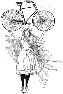 The phrase "la petite reine" has passed into the French language as a term for a bicycle. The origins are in 1891, when Giffard wrote a history of bicycle development, La Reine Bicyclette.[10][11] The expression was made more emblematic by the picture on the cover, of a young woman wearing a modern bicycle as a crown. The title was intended to describe the spirit that the bicycle had brought to her life. Cycling enthusiasts adopted the name, calling their machine "la petite reine".