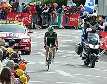 In April, Rolland won the penultimate stage of the Circuit de la Sarthe, and won the race overall the next day.[11] Just a few days later he was 3rd in the one-day race, Paris–Camembert.[12] Rolland then went on to finish 10th overall at the Giro del Trentino, before one of his last goals of the spring campaign at Liège–Bastogne–Liège. After finishing 12th the previous year, Rolland had high hopes but had to settle for 24th. On stage 2 in the 100th edition of the Tour de France, Rolland made it into the breakaway and snatched the polka-dot jersey for the first time in his career. He would keep it until stage 7, where fellow Frenchman Blel Kadri took the lead with 1 point. On the last day in the Pyrenees on stage 9, Rolland reclaimed the jersey after collecting enough points in the breakaway. Rolland lost the jersey on stage 15 to Chris Froome, who won the stage to Mont Ventoux.