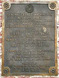 The Upper Manor House is a gambrel roofed, brick house, built by Pierre Van Cortlandt. General George Washington with his aides slept in this house many nights while making Peekskill their headquarters in 1776, 1777 and 1778. While residing there, Cornelia (Van Cortlandt) Beekman refused to give a representative of the British spy John André an American officer's uniform she had in safe-keeping.[38]