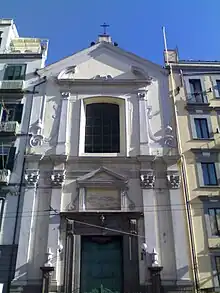 The Church of Pietà dei Turchini is a religious building in Naples, Italy. A smaller church, located on Rua Catalana, was built originally in 1592–1595 by the Confraternity of the Incoronatella. This church was nearly destroyed by an explosion in the Castel Nuovo in 1638. It was rebuilt in 1638–1639, and retitled Santa Maria Incoronatella della Pietà dei Turchini when it acquired a dome. The facade was completed in 1769–70 by Bartolomeo Vecchione.