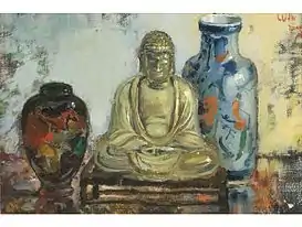He worked every day, painting en plein air, completing about 40 paintings on this first visit. Evenings were spent at the Boonzaier house. Boonzaier himself was an avid collector of Oriental works of art. In bad weather Wenning painted still lifes in Boonzaier's study, with objects like an old Chinese Buddha or a Ming bowl.
