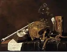 Many paintings formerly attributed to him have been re-attributed to Hendrick Andriessen, especially those with a wreath of straw on top of a skull.[2] Today very few works remain that can be attributed to him, though De Bie wrote a page-long poem about his "still" paintings, and Houbraken also included a poem about his still-life paintings from another source.[3]