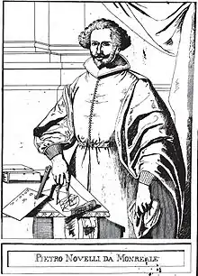 - ↑ Elogio storico di Pietro Novelli da Morreale in Sicilia pittore, architetto, ed incisori. by Agostino Gallo, Giuseppe Patania, Published by Reale Stamperia of Palermo (1830), page 7.