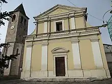 Pieve Santa Maria Assunta is a deconsecrated Roman Catholic church in the town of Pieve Torina, in the province of Macerata Marche, central Italy. The deconsecrated church is now used to display the painting collection of the town, including that from the former church of San Giovanni. but also from the churches of Pomarolo and San Teodora. It includes a Madonna and Child with Angels and Saints by Giovanni Andrea De Magistris and a fresco cycle from the 12th century originally in this church.[1]