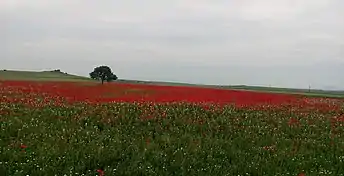 A field of poppies within the lake's endorheic basin