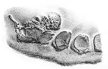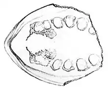 Near the apex there is on the inside a little oval depression or pit, which quite resembles a scar, filled up, as if there had been a foramen. Lindström considered this as the mark of the outlines of the initial shell, where now the apex is seen on the outside.[2]