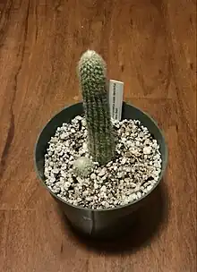 Pilosocereus aurisetus is a columnar cactus that gets no taller than 3 feet. White wool grows out of the areoles and the spines when dense create a yellow hue. Uniformly spaced ribs and this cactus does not branch though it can create new plants by suckering.[3]