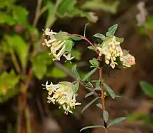 Pimelea pagophila, commonly known as Grampians rice-flower,[2] is a species of shrub in the family Thymelaeaceae. It has a restricted distribution, white flowers in spherical heads at the end of branches, green leaves arranged in opposite pairs and is endemic to Victoria, Australia.