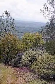 Beginning in 1977, the California Native Plant Society became aware of CDF's intention to dispose of the 300-acre (1.2 km2) property surrounding the fire lookout station. Correspondence from CDF to the state's Department of General Services listed properties, including Pine Hill, as surplus. The surplus parcels list then went through the legislative process where it was determined that the properties were indeed surplus to the state's needs.[5] The Society united with other environmental groups to encourage the state government to begin a coordinated effort to preserve significant natural areas. From 1978 to 1979, a multi-constituent committee, including the California Native Plant Society, Audubon Society, and California Resources Agency, met to set up a significant natural area for Pine Hill.