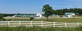 ![]() Pineland Farms' dairy barn (left) and calf barn (right of center), 2022 | |