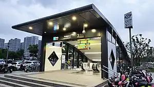 Pinglonglu West (Chinese: 平泷路西) is a station of Line 4, Suzhou Rail Transit. The station is located in Gusu District of Suzhou. It has been in use since April 15, 2017, the same time of the operation of Line 4.