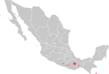 Pinguicula orchidioides is currently known from only a handful of sites, most of them in the state of Oaxaca, though a few locations are also known from the state of Guerrero and the Guatemalan department of Sololá.[1] The lack of records from Chiapas and other intermediary zones is likely the result of sampling bias.[14] Here it grows in mountainous regions between 2000 and 2700 (3000) meters (6500–8850 ft) in altitude.