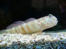 The pink-speckled shrimpgoby (Cryptocentrus leptocephalus) is a species of goby native to the western Pacific Ocean where it occurs on silty substrates in coastal reefs, lagoons, mangrove swamps and tide pools. It grows to a length of 12 centimetres (4.7 in) SL.[1]