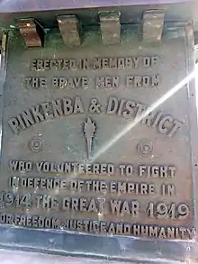 - ↑ "PINKENBA SOLDIERS' MEMORIAL". The Brisbane Courier. No. 19, 213. Queensland, Australia. 18 August 1919. p. 7. Retrieved 13 January 2017 – via National Library of Australia.