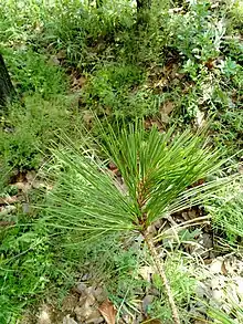 The species population occurs in pine-oak forests found near and within close proximities of natural grasslands. It is found growing with other species of pine, such as Pinus douglasiana, Pinus devoniana, Pinus oocarpa, Pinus lumholtzii, and Pinus luzmarie.[2]