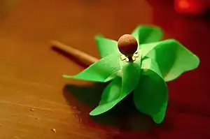 A pinwheel is a simple child's toy made of a wheel of paper or plastic curls attached at its axle to a stick by a pin. It is designed to spin when blown upon by a person or by the wind. It is a predecessor to more complex whirligigs.
