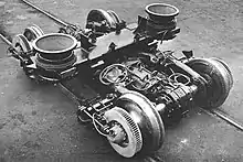 The cars used the revolutionary, and aptly named, Budd Pioneer III truck, which was a lightweight, inboard bearing railroad bogie designed for high-speed operation. This truck would see continued use by Budd on its subsequent Silverliner order, as well as MUs ordered by the Long Island Rail Road and Metro North, PATCO rapid transit cars and the Amtrak Amfleet cars, where they would operate up to speeds of 125 miles per hour (201 km/h). The Pioneer III cars used a slightly different right-angle gearbox (adapted from the very successful Budd-built PTC M-3 transit cars) set the traction motors at a right angle to the axle instead of the more common lateral placement. The need for a larger traction motor resulted in the change to the more traditional layout in the Silverliner II design.