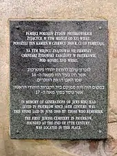 Following the 1942 deportations to Majdanek and Treblinka death camps, some 3,500 Jewish factory workers still remained in the small Ghetto.[1] However, mass executions became more frequent in 1943, even inside the depleted Synagogue, in the Jewish cemetery, and at an execution site near Raków. By 1944 only 1,000 Jews were still alive. As the Soviet front began to approach, they were loaded onto freight trains and sent to Buchenwald and Ravensbrück, never to return.[1]