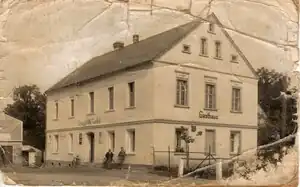 An inn run by Emanuel Otte, circa 1930. The town was then called "Peterwitz," having been part of Germany.